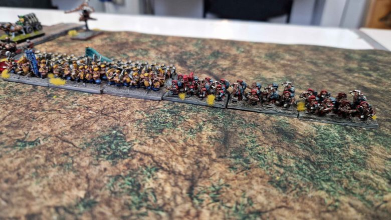 Heute haben die Zwerge versucht, ihre Wagen mit Bugman’s XXX-Bier in die Stadt zu liefern. Die Sigmariten hatten was dagegen. Am Ende konnte aber keiner den Sieg davon tragen. Außerdem wurden noch WH40K und Kill Team gespielt.