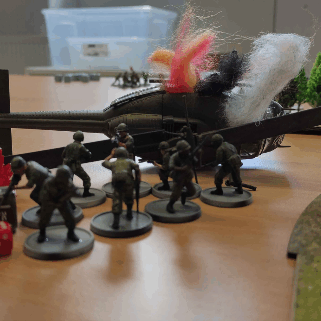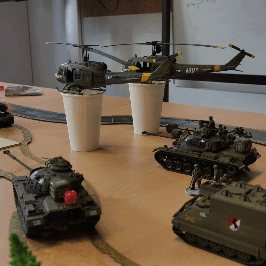 Papbecher wurden kurzerhand zu Plattformen für die Hubschrauber umfunktioniert.Dieses Mal ging es in ein intensives Vietnam-Szenario.