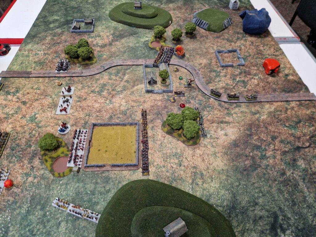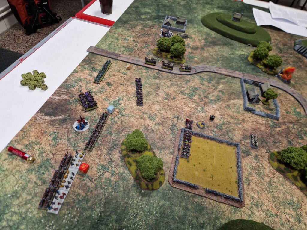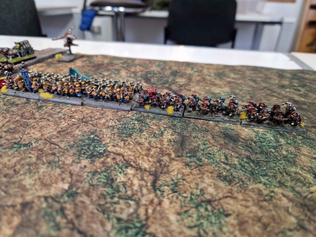 Heute haben die Zwerge versucht, ihre Wagen mit Bugman’s XXX-Bier in die Stadt zu liefern. Die Sigmariten hatten was dagegen. Am Ende konnte aber keiner den Sieg davon tragen.