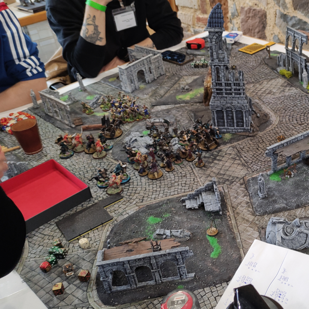 Veranstaltungsort Die Forum Hassia fand im Hardeshäuser Hof, in Fritzlar statt – ein idealer Ort für Turniere, Demotische, Händlerstände und große Spielflächen. Die Halle bietet eine entspannte Atmosphäre, in der man problemlos einen ganzen Tag (oder mehr) mit Würfeln, Bemalen, Stöbern und Fachsimpeln verbringen kann. Wir hatten auf jeden Fall eine Menge Spaß und auch die historische Altstadt von Fritzlar ist einen Besuch wert.